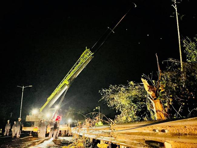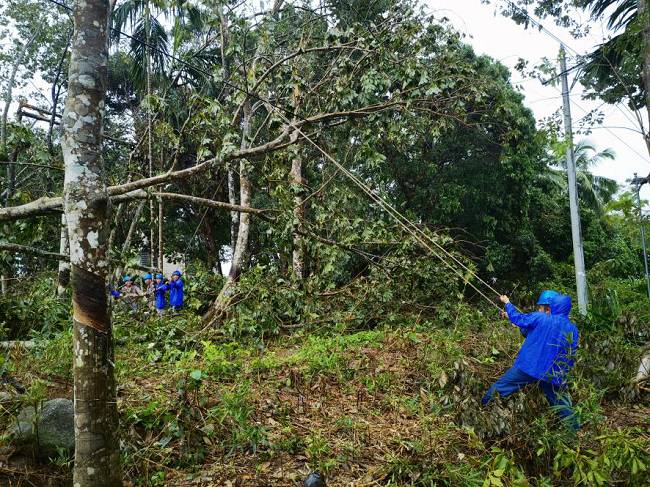 到達海南后,揭陽明利綜合能源發(fā)展有限公司支援海南抗災(zāi)搶險隊在澄邁縣緊鑼密鼓開展搶修復(fù)電工作。澄邁地貌相對平整,但林區(qū)覆蓋率較高,橡膠林香蕉園廣泛分布,臺風(fēng)摩羯過境后,林區(qū)樹木倒塌壓垮電線,線路損壞嚴(yán)重。為打通線路搶修通道,加快復(fù)電進度,公司搶險隊伍一邊組織大型施工機械快速重新組立電桿,一邊組織人員及時消缺搶修,力爭以最快速度恢復(fù)線路正常供電。