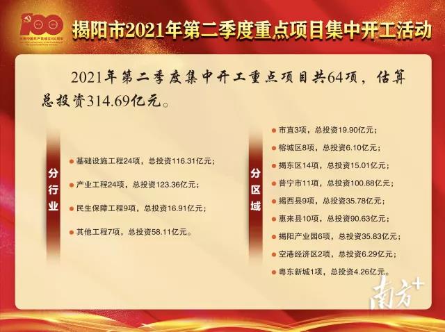 隨著施工機(jī)械的馬達(dá)聲“轟隆隆”響起,揭陽市“引龍工程”的號(hào)角正式吹響。不久之后,龍頸水庫的一股股甘流將緩緩穿過揭陽中心城區(qū),橫跨揭東區(qū)、普寧市等地,向遠(yuǎn)方奔騰……這是揭陽市2021年第二季度集中開工64個(gè)重點(diǎn)項(xiàng)目中的亮點(diǎn)之一。在建黨100周年之際,揭陽牢牢把握“新發(fā)展階段、新發(fā)展理念、新發(fā)展格局”的新要求,緊緊圍繞省委、省政府對(duì)揭陽的發(fā)展定位,加速推進(jìn)重大項(xiàng)目建設(shè),持續(xù)掀起擴(kuò)大有效投資的熱潮。